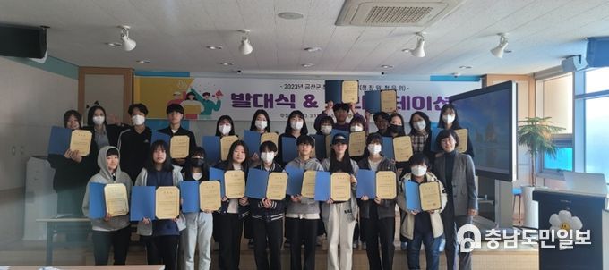 (금산=충남도민일보) 금산군은 지난 11일 금산청소년미래센터에서 군을 대표하는 청소년참여기구인 제9기 금산군청소년참여위원회와 제10기 청소년미래센터의 청소년운영회 위원 30여 명이 참여한 가운데 2023년 청소년자치기구 연합 발대식을 개최했다.