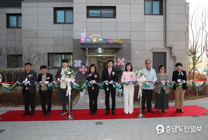 (금산=충남도민일보) 금산군은 지난 16일 금산읍 양지리에 위치한 e편한세상 금산프라임포레 아파트 내 킨더포레 국공립 어린이집 개원식을 개최했다.