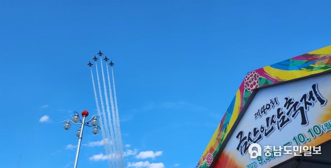 (금산=충남도민일보) 제41회 금산세계인삼축제의 공군 블랙이글스 에어쇼 축하 비행이 올해 10월 14일로 최종 확정됐다.