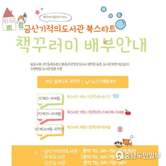 금산군 영유아 북스타트 책 꾸러미 배부에 대한 자세한 내용은 금산기적의도서관, 추부도서관, 진산도서관에 문의하면 된다.