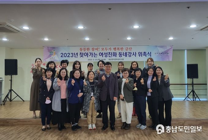 군 관계자는 “여성친화 동네강사들의 노력으로 여성과 남성이 평등하고 행복한 금산이 될 수 있을 것”이라며 “군민들의 성인지 감수성이 향상될 수 있도록 최선을 다하겠다”고 말했다.