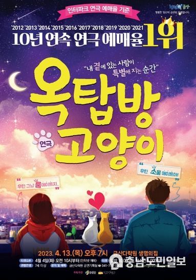 (금산=충남도민일보) 금산군은 오는 4월 13일 오후 7시 대공연장에서 금산다락원 기획공연 옥탑방 고양이 연극을 개최한다.