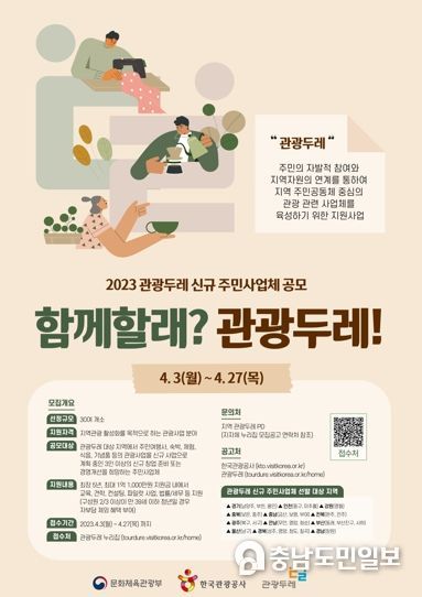 (금산=충남도민일보) 금산군은 오는 27일까지 2023년 관광두레 신규 주민사업체를 모집한다.