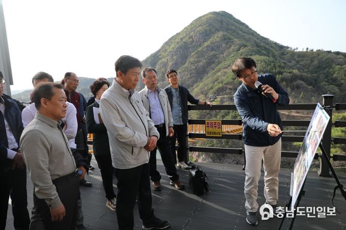 (금산=충남도민일보) 박범인 금산군수는 지난 10일 추부면 구 추부터널‧태조대왕태실, 제원면 금산출렁다리 등 3곳에 대한 현장행정을 전개했다.