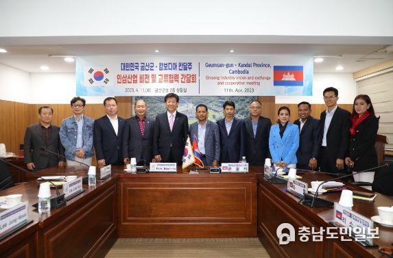 (금산=충남도민일보) 금산군은 지난 11일 캄보디아 칸달주 정부 관계자와 인삼산업 비전 및 교류협력방안 논의를 위한 간담 시간을 가졌다.