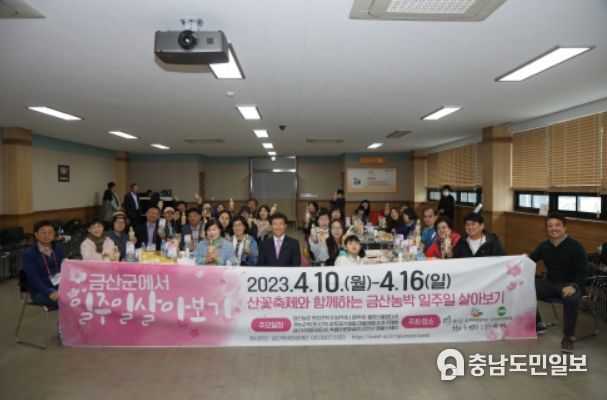 박범인 금산군수는 “금산군은 천혜의 자연환경을 가지고 있으며 귀농‧귀촌 최적의 장소”라며 “올해 추진되는 일주일 살기 프로그램을 통해 이점을 확실히 알리고 지역축제, 관광콘텐츠도 홍보해 나갈 수 있도록 최선을 다하겠다”고 말했다.