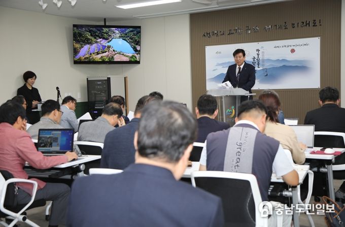 (금산=충남도민일보) 박범인 금산군수는 지난 11일 금산군청 기자실에서 금산인삼 유럽진출을 위한 독일 방문 결과 언론 브리핑에 나섰다.