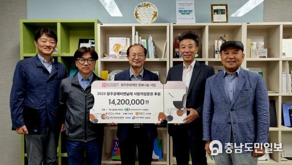 이는 청주문화재단이 지난 5월부터 추진 중인 청주문화나눔 사업의 일환으로, 트로트 가수 김다현을 시작으로 ㈜대전충청산업안전본부, 문화예술기획 살로메, 일광, 대한기계설비건설협회충청북도회, (사)충북지역개발회 등 개인․기업 7곳이 2023 청주공예비엔날레 사랑의 입장권 보내기에 동참해 총 1,420만원의 기부금이 모였다.