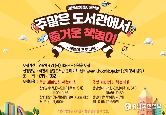 (충남도민일보 / TV / 안희진기자) 이천시 어린이도서관에서 북스타트 주말 재미있는 책놀이를 운영한다.