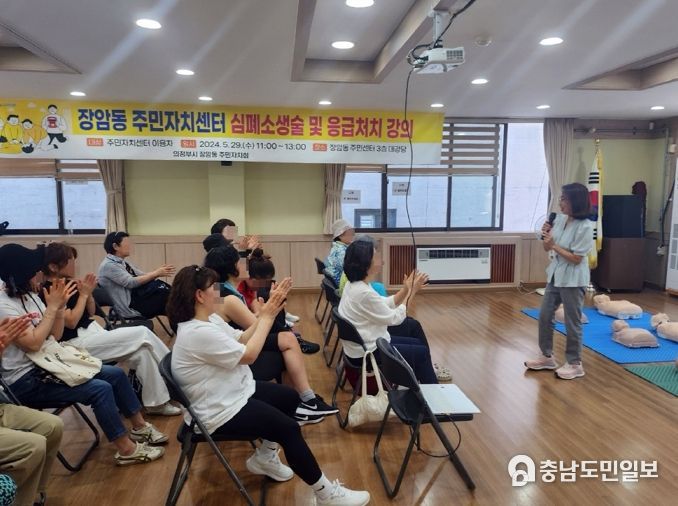 (충남도민일보 / TV / 안희진기자) 의정부시 장암동주민센터는 주민자치센터 프로그램 강사 및 수강생 30명을 대상으로 심폐소생술 및 응급처치 교육을 실시했다고 31일 밝혔다.