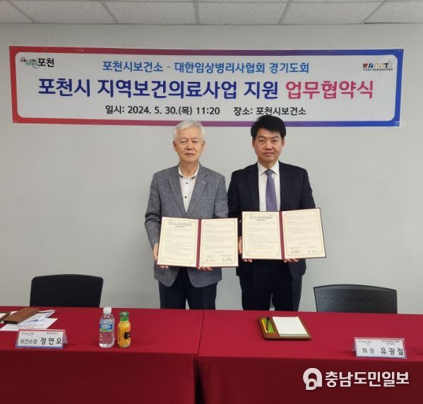 (충남도민일보 / TV / 안희진기자) 포천시는 지난 30일 포천시 지역보건 의료서비스의 수준을 향상하고 올바른 건강증진 사업을 추진하기 위해 대한임상병리사협회 경기도회와 업무협약을 체결했다.