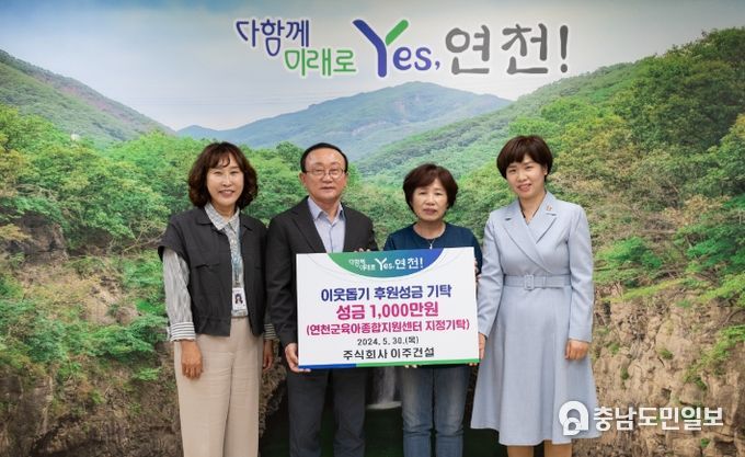 (충남도민일보 / TV / 안희진기자) 연천군 청산면 소재 주식회사 이주건설(대표 전동천)은 30일 연천군청을 방문해 관내 영유아 지원을 위한 성금 1,000만원을 기탁했다.