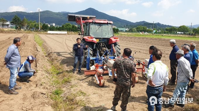 (충남도민일보 / TV / 안희진기자) 양주시가 31일 남면 신산리 일원에서 은남콩작목반 및 양주시콩연구회 회원을 대상으로 국내 육성 우수 신품종 시범사업 논콩(선풍) 파종 연시회를 개최했다.