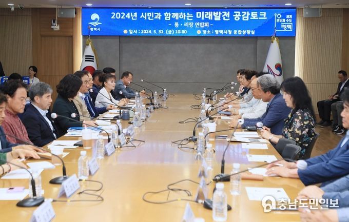 (충남도민일보 / TV / 안희진기자) 평택시는 31일 시의 통‧리장 연합회 회원들과 함께 지역 관심 사항에 대한 논의 등 소통의 시간을 마련하기 위해 ‘시민과 함께하는 미래발전 공감토크’를 추진했다.