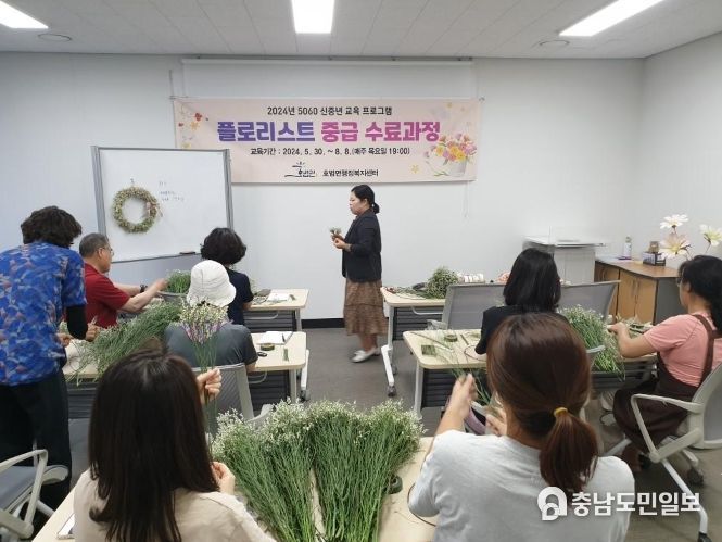(충남도민일보 / TV / 안희진기자) 호법면에서 5060 신중년을 대상으로 플로리스트 중급 수료과정을 운영한다고 밝혔다.