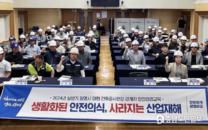 (충남도민일보 / TV / 안희진기자) 광명시는 지난 30일 시청 대회의실에서 재개발·재건축과 공공·민간 공사 등 관내 42개 대형건축공사의 현장 관계자 60명을 대상으로 안전관리 교육을 진행했다.