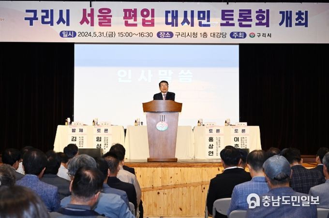(충남도민일보 / TV / 안희진기자) 구리시는 5월 31일 구리시청 1층 대강당에서 기관·사회단체·시민단체 등 시민 400여 명이 참석한 가운데 ‘구리시 서울 편입 대시민 토론회’를 개최했다고 밝혔다.