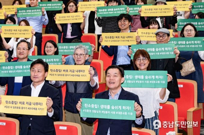 이재준 시장과 참석자들이 함께 ‘탄소중립! 생태를 숨 쉬게 하자!’, ‘탄소중립! 바로 지금 나부터!’라는 구호를 외치는 것으로 기념식은 마무리됐다.