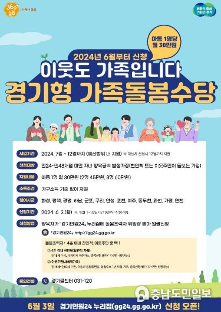 (충남도민일보 / TV / 안희진기자) 여주시는 생후 24~48개월 미만 아동을 돌보는 4촌 이내 친인척 또는 이웃주민을 대상으로 아동 수에 따라 최대 60만원을 지급하는 ‘경기형 가족돌봄수당’을 6월부터 시행한다고 밝혔다.