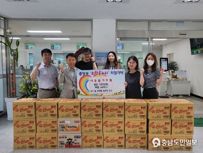(충남도민일보 / TV / 안희진기자) 지난 5월 31일 여주시 교동 휴먼빌아파트(교동로 120) 입주민 일동이 중앙동행정복지센터에 이웃돕기 성금 120만원과 라면 44박스를 기탁했다.