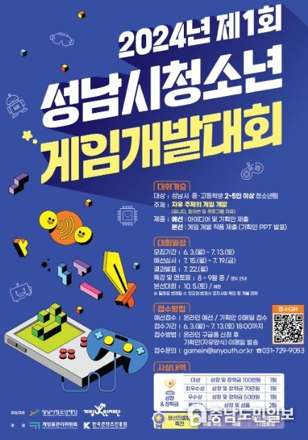 (충남도민일보 / TV / 안희진기자) 성남시청소년재단는 오늘(3일)부터 7월 13일까지 제1회 ‘성남시청소년게임개발대회’ 접수를 시작한다.