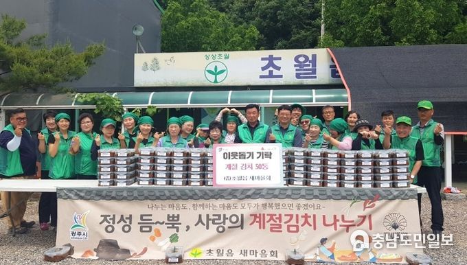 한편, 초월읍 새마을회는 매년 정기적으로 여름철에는 직접 심어 기른 감자, 겨울에는 김장 김치 나눔을 실천하고 있으며 틈틈이 저소득층 위한 성금 기탁 등 이웃사랑을 이어오고 있다.