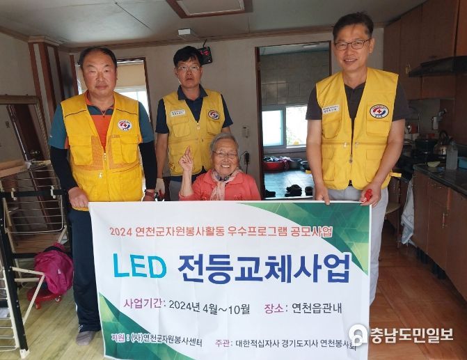 2024 연천군 자원봉사 우수프로그램 공모사업으로 선정된 ‘LED 전등교체 사업’ 활동은 노후된 전등으로 어둡게 생활하는 취약계층에게 밝고 환하게 지낼 수 있도록 쾌적한 환경을 조성하고자 전등과 스위치, 콘센트를 교체하는 사업이다. 대한적십자사 경기도지사 연천봉사회는 4월부터 9월까지 월 1회 총 6회 대상자 2명의 집에 방문해 LED 전등교체 사업을 추진할 계획이다.