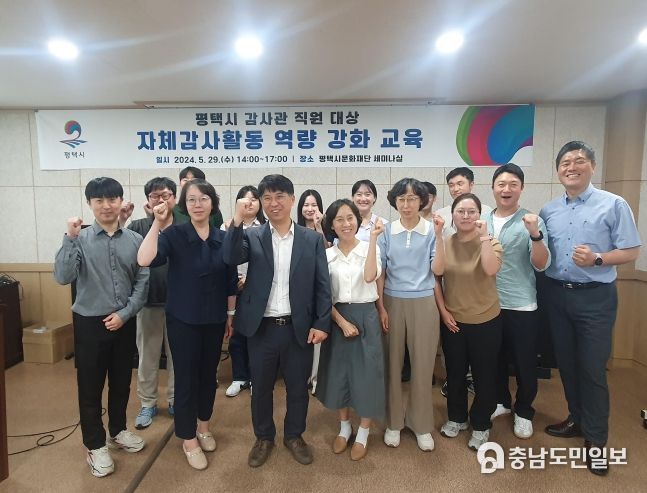 (충남도민일보 / TV / 안희진기자) 평택시는 지난달 29일 감사관 직원을 대상으로 자체감사활동 역량 강화 교육을 추진했으며, 5월 30일에는 2023년 평가 최우수기관(B그룹)으로 선정된 광명시를 방문하여 본청 자체감사 실시, 다양한 감사 활동 등에 대해 벤치마킹했다.