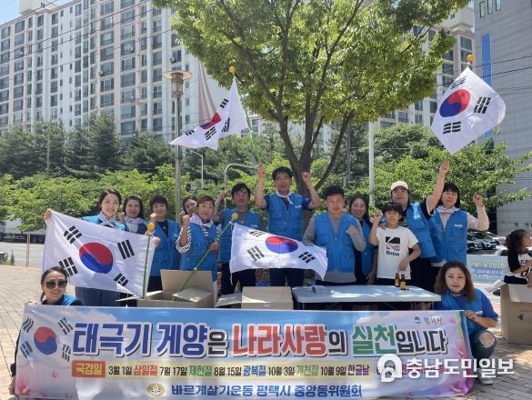 (충남도민일보 / TV / 안희진기자) 평택시 중앙동 바르게살기위원회에서는 지난 1일 평택시 부락산 분수공원에서 제69회 현충일을 맞아 태극기 나눔 행사를 진행했다.