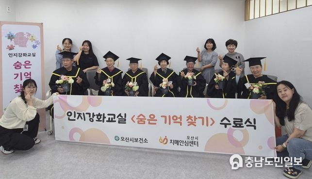 (충남도민일보 / TV / 안희진기자) 오산시 보건소 치매안심센터는 60세 이상 치매 고위험군(경도인지장애)어르신 7명을 대상으로 인지강화교실 '숨은기억찾기'을 운영하고 지난 30일 1기 프로그램 수료식을 개최했다고 밝혔다.