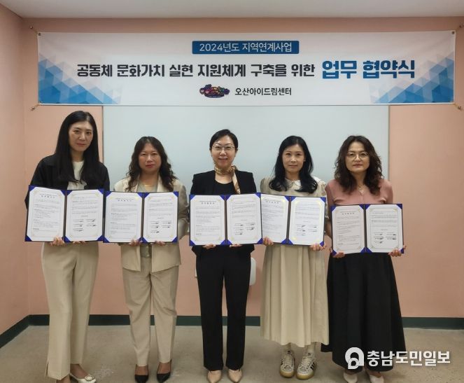 (충남도민일보 / TV / 안희진기자) 오산아이드림센터는 지난 31일 아동의 놀 권리를 보장하고 잠재 능력을 최대한 발휘할 수 있는 공동체 문화 가치 실현 지원체계 구축의 하나로 오산시어린이집연합회 4개 분과와 업무협약을 체결했다.