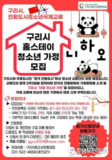 (충남도민일보 / TV / 안희진기자) 구리시청소년재단 청소년문화의집은 글로벌 시대에 맞는 인재 양성을 위해 자매도시인 중국 진황도시의 청소년을 초청하는 청소년국제교류 사업을 진행한다.