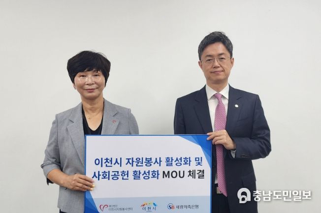 (충남도민일보 / TV / 안희진기자) 경기도 이천시 소재 세람저축은행은 5월 31일 (재)이천시자원봉사센터와 ‘이천시 자원봉사 활성화 및 사회공헌 활성화를 위한 업무협약(MOU)’을 체결했다고 밝혔다.