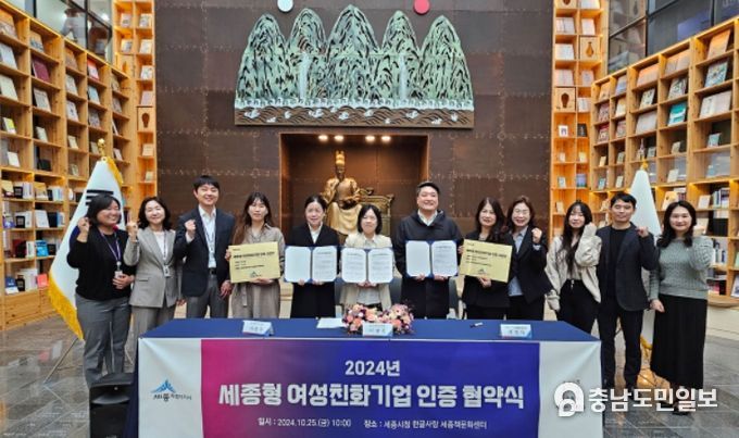 (충남도민일보(도민방송) 정연호기자) 세종특별자치시가 25일 세종시청 한글사랑 책문화센터에서 ‘2024년 세종형 여성친화기업’ 인증 협약식을 개최했다.