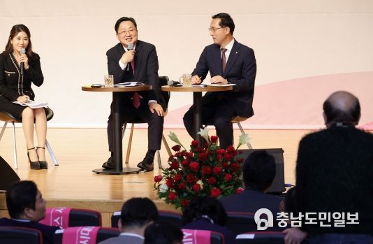 (충남도민일보(도민방송) 정연호기자) 이장우 대전시장이 31일 동구청 대강당에서 박희조 동구청장을 비롯한 구민 400여 명이 참석한 가운데 동구민과 대화의 시간을 가졌다.