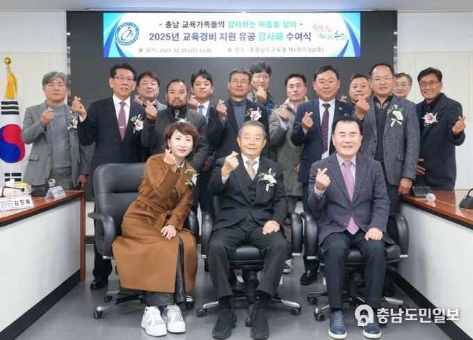 (충남도민일보=충남) 정연호기자/ 충남교육청은 19일, 도교육청 회의실에서 교육경비 지원으로 충남 교육발전에 이바지한 개인과 기업·민간단체에 감사패를 전달했다.