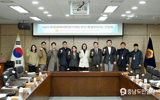 (충남도민일보 =세종) 정연호기자/ 세종특별자치시의회 2027 하계세계대학경기대회 추진 특별위원회(위원장 김현미)는 24일 간담회를 개최하고, 선수촌 건립 및 유도장 조성 등 대회 준비 전반의 추진상황을 보고받은 후 주요 현안을 논의했다.