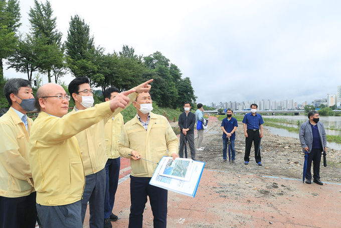 [대전=충남도민일보]정호영기자/ 허태정 대전시장은 29일 오후 2시 30분 대전 유성구 유림공원 앞 세월교 현장을 찾아 점검하고, 집중호우로 인한 침수 피해 예방에 만전을 당부했다.