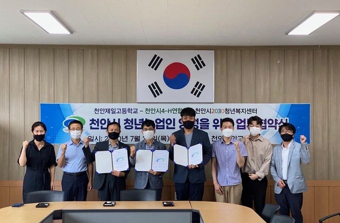 [천안=충남도민일보]인숙진기자/ 천안시2030청년복지센터(센터장 최진근)는 지난 30일 천안제일고등학교(교장 변영우), 천안시4-H연합회(회장 전병찬)와 업무협약을 체결했다고 밝혔다.