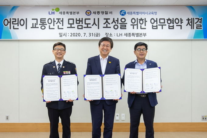 세종시교육청은 이 같은 어린이 교통안전 모범도시 조성을 위해 지난 31일 LH세종특별본부에서 한국토지주택공사(본부장 임동희), 세종경찰서(서장 송재준)와 업무협약을 체결했다.