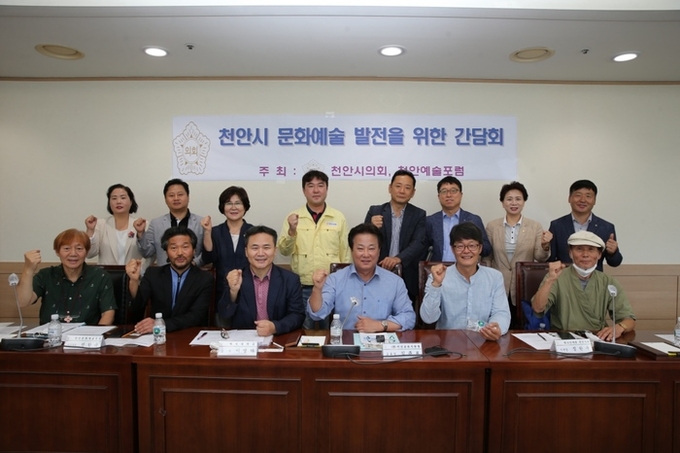 [천안=충남도민일보]정연호기자/ 천안시의회 복지문화위원회(위원장 김월영)는 지난 5일 경제산업위원회 회의실에서 천안문화예술포럼 대표를 비롯해 문화예술인들과 간담회를 가졌다.