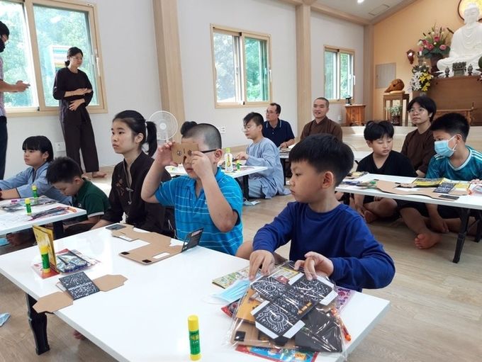 4일부터 천안시 목천읍에 위치한 베트남 사찰 원오사에서 진행된 교육에는 15명의 학생이 참가한 가운데 중요도가 날로 높아지고 있는 인공지능(AI)을 비롯해 가상 현실 콘텐츠 관련해서 ▲4차 산업혁명과 인공지능(AI)의 이해 ▲가상 현실(VR) 활용한 시장 분석 및 사례 소개 ▲카드 보드 VR 기기(HMD), 닌텐도 스위치 라보 VR 활용 교육 ▲기타 소프트웨어 교육으로 진행됐다.