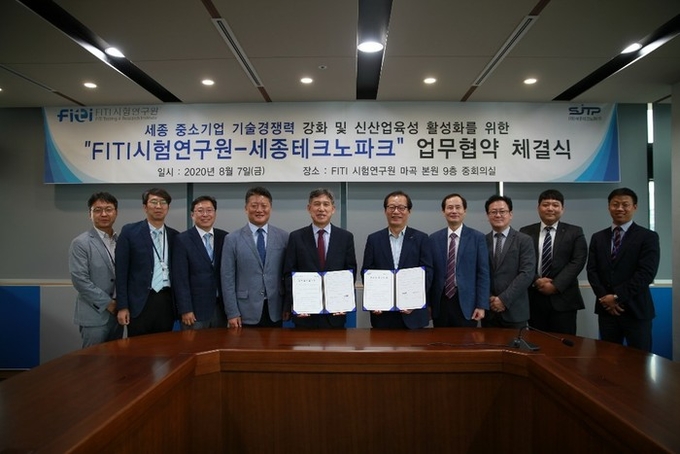 [세종=충남도민일보]정연호기자/ 세종시의 지역산업거점기관인 세종테크노파크(원장 김현태)는 글로벌 종합 시험인증기관인 (재)FITI시험연구원(원장 전제구)과“세종 중소기업 기술경쟁력 강화 및 신산업 육성 활성화”를 위한 업무협력협약(MOU)을 지난 8월 7일 체결했다고 밝혔다.