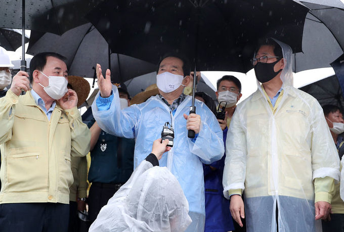 정 총리는 아산 온양천 수해 복구 현장을 살피고, 모종동 신리초등학교 체육관 임시주거시설에서 생활 중인 이재민을 만나 위로의 뜻을 전했다.