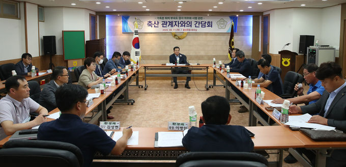 [홍성=충남도민일보]정연호기자/ 홍성군의회(의장 윤용관)는 지난 11일 홍성축협 회의실에서 가축분뇨법령에 의한 가축분 퇴비 부숙도 검사 의무화가 시행됨에 따라 관련단체와의 간담회를개최했다.