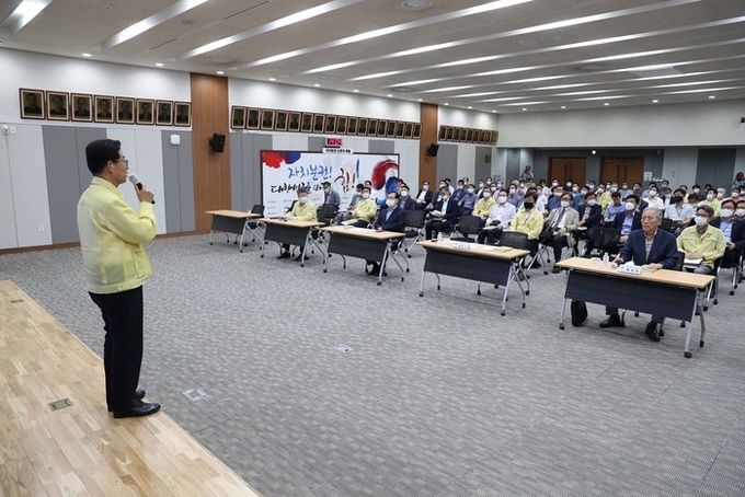[충남=충남도민일보]정연호기자/ 충남도는 18일 도청 대회의실에서 양승조 지사, 4급 이상 간부공무원, 공공기관장 등 120여 명이 참석한 가운데 청렴 특강을 실시했다.