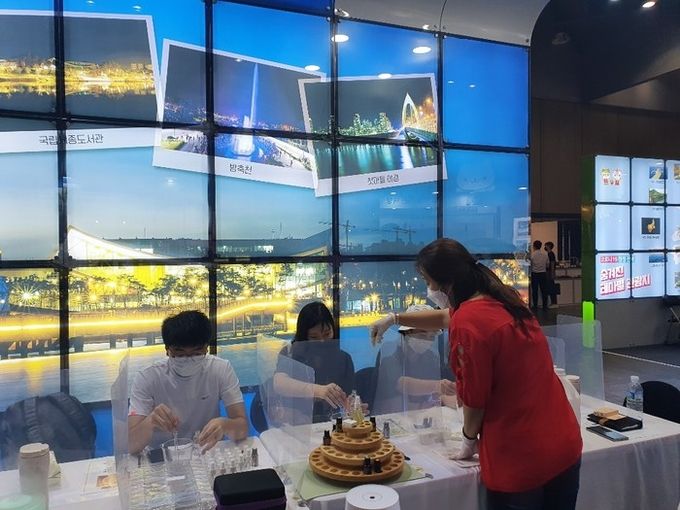 또, 세종시 홍보관에서는 지역 대표 특산물인 복숭아를 원료로 하는 화장품세트와 복숭아 와인 등의 판매부스와 코로나19 손소독제 만들기 체험 활동 등을 운영해 큰 호응을 얻었다.