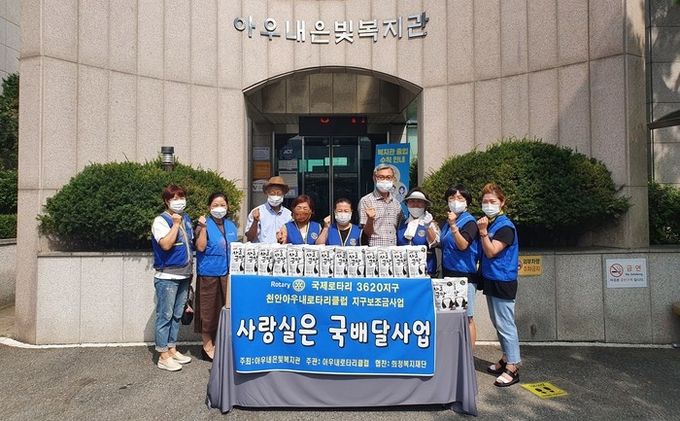 [천안=충남도민일보]한만태기자/ 아우내은빛복지관(이수경 관장, 이하 복지관)은 지난 20일 천안아우내로타리클럽(이순애 회장)과 함께 지역사회의 저소득층과 홀몸어르신 200명을 대상으로 ‘사랑실은 국배달 사업’을 진행했다.
