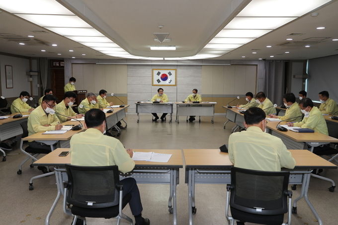 [아산=충남도민일보]정연호기자/아산시(시장 오세현)는 오세현 아산시장을 비롯한 수해 관련 국·소장 및 관계 부서장이 참석한 가운데 24일 시청 상황실에서 ‘코로나19 비상경제대책 및 생활방역대책 회의’를 개최했다.