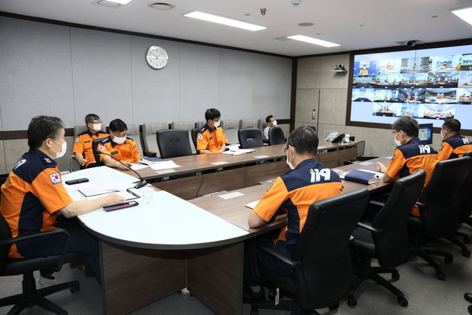 [충남=충남도민일보]정연호기자/ 충남소방본부(본부장 손정호)는 25일 도청 작전회의실에서 제8호 태풍 ‘바비’ 북상에 따른 긴급 소방지휘관 영상회의를 개최했다.